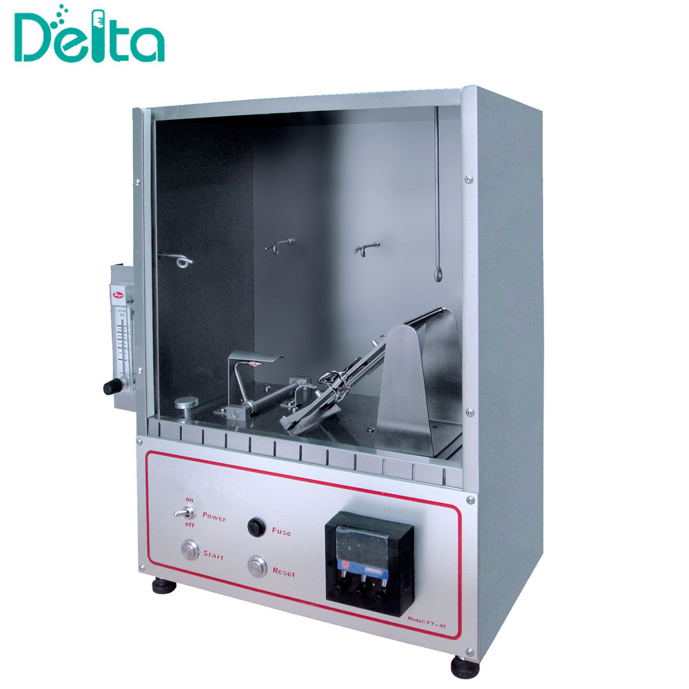 Εργαλεία δοκιμής φλόγας 45 βαθμών για υφάσματα VF-45 CFR 1610παρέχει μεθόδους δοκιμής της εύφλεκτης ικανότητας των ενδυμάτων και των υφασμάτων που προορίζονται να χρησιμοποιηθούν για ένδυση, καθορίζει τρεις κατηγορίες εύφλεκτης ικανότητας,καθορίζει τις απαιτήσεις που πρέπει να πληρούν τα υφάσματα για να ταξινομούνται, και προειδοποιεί κατά της χρήσης των υφασμάτων που έχουν καύσιμα χαρακτηριστικά που δεν είναι κατάλληλα για ένδυση.