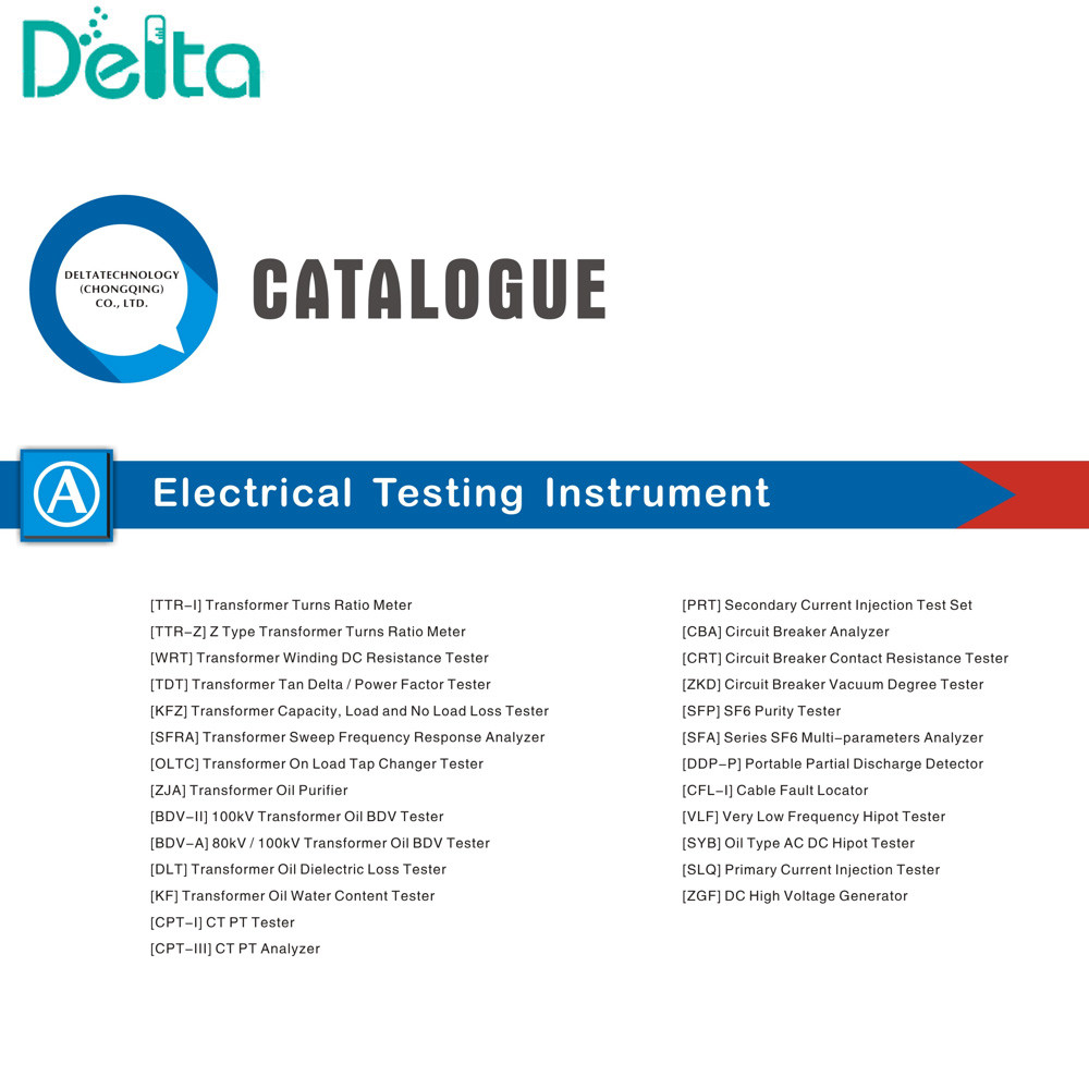Η Delta Technology διαθέτει μια σειρά εξοπλισμού για τη δοκιμή μετασχηματιστή, διακόπτη, καλωδίου, SF6 και μετασχηματιστή ελαίου.